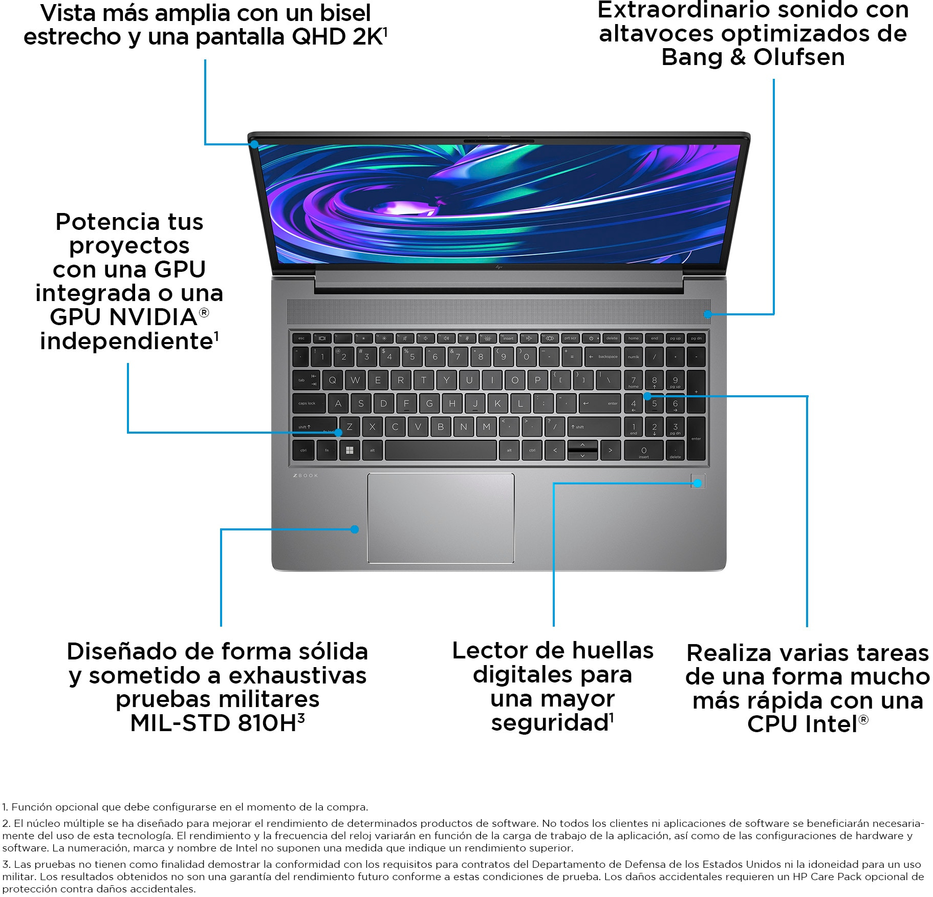 Potencia con certificación profesional a tu alcance\nDa un paso más y accede al rendimiento y la seguridad profesionales del ZBook a un precio increíblemente asequible. Da un impulso a tu productividad en este dispositivo duradero pero con altas prestaciones, que incorpora funciones de colaboración avanzadas y componentes de nivel profesional para ejecutar aplicaciones de software profesionales para CAD, diseño 3D, modelado, renderización y más.