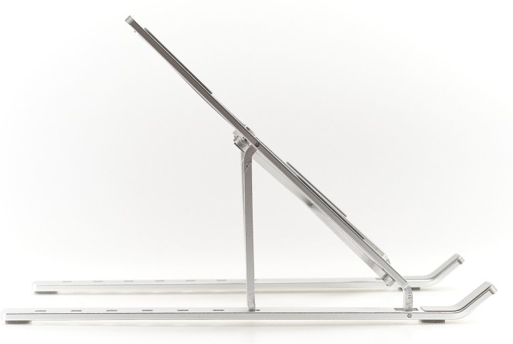 . Tipo de producto: Soporte para ordenador portátil y tableta, Color del producto: Plata, Material: Aluminio. Rango de ajustes de altura: 75 - 165 mm. Ancho: 240 mm, Profundidad: 45 mm, Altura: 15 mm