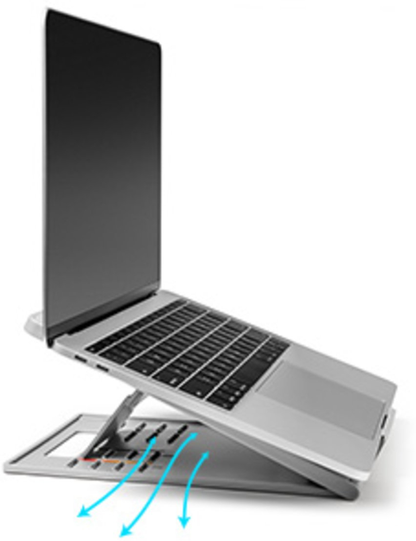 Combine los beneficios ergonómicos de elevar la altura de su pantalla con los beneficios tecnológicos que mejoran la circulación del aire de su portátil o tableta con el elevador y soporte enfriador ergonómicos y ajustables para portátiles/tabletas Kensington® SmartFit® Easy Riser™ Go. El elegante diseño 2 en 1 permite ajustar tanto la altura como el ángulo para mejorar la postura, favorecer una correcta alineación de los ojos y mejorar la comodidad del cuello y los hombros mientras los componentes internos del portátil o tableta se mantienen frescos. Las almohadillas antideslizantes impiden que el soporte se deslice hacia adelante, los insertos acolchados ofrecen un ajuste estable y seguro para el dispositivo y el diseño plegable y delgado es perfecto para viajar. Se puede utilizar con un teclado y ratón externos (se venden por separado). Admite portátiles y tabletas de hasta 14 pulgadas.