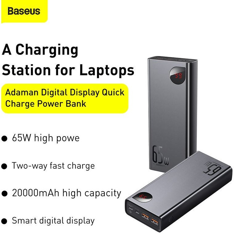 Baseus PPIMDA-D01. Color del producto: Negro, Compatibilidad del cargador: Teléfono móvil/smartphone, Material de la carcasa: ABS, Aluminio. Tecnología de batería: Polímero, Capacidad de batería: 20000 mAh, Fuente de carga: USB. Interfaz de entrada: MicroUSB. Ancho: 65 mm, Profundidad: 27 mm, Altura: 154 mm