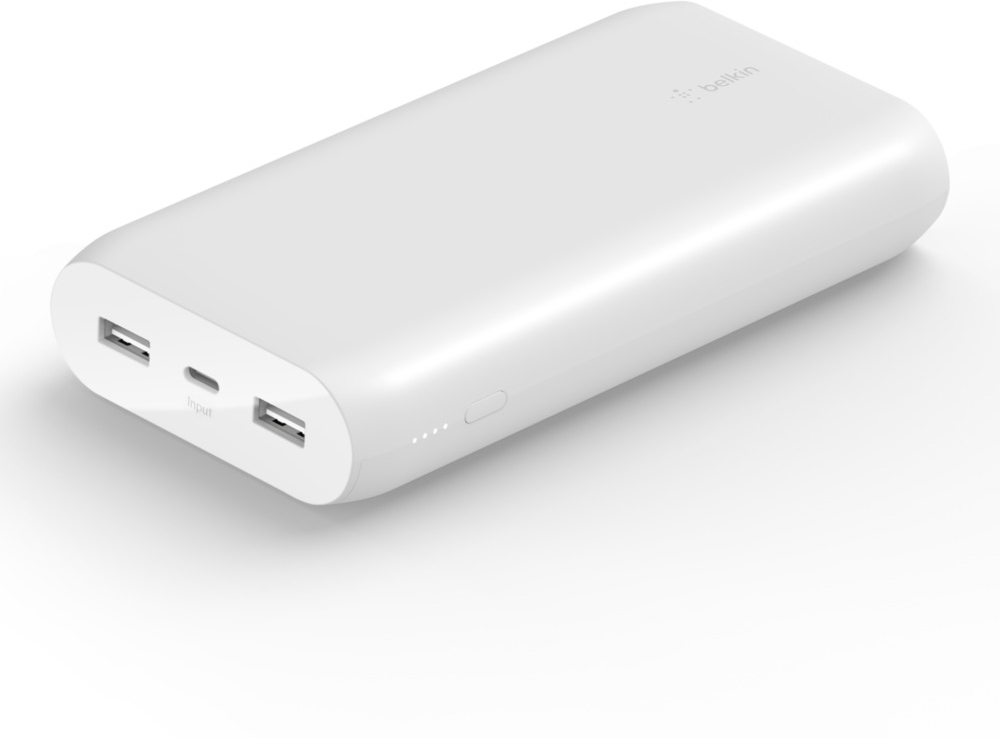 Belkin BOOST?CHARGE. Color del producto: Blanco, Compatibilidad del cargador: Universal, Forma: Rectángulo. Capacidad de batería: 20000 mAh, Fuente de carga: USB. Potencia total de salida: 15 W. Interfaz de entrada: USB Tipo C. Ancho: 74,7 mm, Profundidad: 157,2 mm, Altura: 25,9 mm