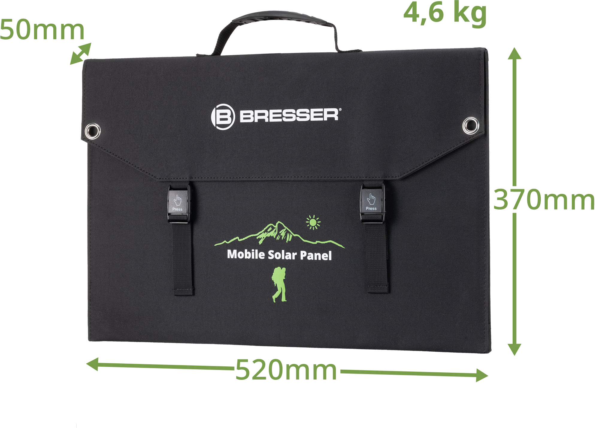 Viaje con autonomía con el cargador solar BRESSER.Acampando, navegando, haciendo senderismo o nadando en el lago más cercano, cualquiera que disfrute de estar al aire libre no quiere prescindir de su smartphone, tablet, powerbank, etc. Pero ¿dónde puedo encontrar la toma de corriente más cercana? Al fin y al cabo, todas las baterías se agotan y no podemos arreglárnoslas sin electricidad. Con el cargador solar ultracompacto BRESSER, solo tiene que utilizar la energía del sol para cargar sus dispositivos. La energía solar, respetuosa con el medio ambiente, es gratuita - ¡y usted sigue siendo independiente de la red eléctrica!.Simplemente ábralo, póngalo y produzca inmediatamente energía solar verde.El manejo es muy sencillo: despliegue el panel solar y alinéelo lo más perpendicularmente posible al sol. A continuación, conecte el dispositivo que desea cargar al cargador solar, ya sea con un cable USB adecuado (no incluido) o con el cable de conexión de CC incluido. El proceso de carga comenzará inmediatamente..¿Qué dispositivos puede cargar el panel solar?.El cargador solar hace que todos los dispositivos con una conexión de alimentación USB o con la conexión de enchufe de corriente continua mencionada anteriormente vuelvan a funcionar en poco tiempo: por ejemplo, teléfonos inteligentes, tablets, bancos de energía, playstations portátiles, reproductores MP4, dispositivos GPS y auriculares Bluetooth. También es adecuado para cargar grandes estaciones de energía como la BRESSER Power Station 100 Watt (art. no.3810000) y la BRESSER Power Station 500 Watt (art. no. 3810020) así como estaciones de energía de otros fabricantes con valores de conexión adecuados..Cargador universal con opciones de conexión flexibles. El cargador solar hace que todos los dispositivos con una conexión de alimentación USB o la conexión de enchufe de corriente continua antes mencionada vuelvan a funcionar en poco tiempo - por ejemplo, teléfonos inteligentes, tabletas, bancos de energía, estaciones de juego portátiles, reproductores de MP4, dispositivos GPS y auriculares Bluetooth. Para cargar grandes estaciones de energía, recomendamos los paneles solares BRESSER más potentes con al menos 60 vatios de potencia de salida - ver art. no. 3810050, 3810060, 3810070..Cargador universal con opciones de conexión flexibles.Para alimentar sus dispositivos, dispone de dos tomas USB A de color negro para la carga normal y otra toma USB A de color naranja con el estándar QC3.0 para la carga rápida de las nuevas generaciones de dispositivos. El volumen de suministro incluye un cable de conexión universal adicional con una clavija DC hueca de 5,5/2,1 mm de diámetro y 2,5 metros de longitud, así como 3 adaptadores de enchufe (3,5/1,35 mm, 5,5/2,5 mm, 8,0/5,5/0,8 mm). La polaridad de los conectores es la siguiente: Contacto interior = positivo (+), contacto exterior = negativo (-)..¿Cuánto tiempo tarda en cargarse una batería?.Es útil saber cuánto tiempo dura teóricamente una carga completa con
