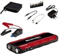 El arrancador y acumulador de energía Einhell CE-JS 18 es una ayuda para el arranque y estación de energía compacta y manejable, por lo que resulta el acompañante ideal en todo vehículo y para ir de viaje. Un solo equipo basta para hacer un puente en una batería de automóvil vacía y también para recargar de manera rápida y fácil consumidores eléctricos de tipo móvil, como teléfonos móviles, ordenadores portátiles, cámaras, etc. La potente batería de polímero de litio, con una capacidad de 3 x 6000 mAh, ofrece rendimiento suficiente en todo momento. Además, los LED del indicador permiten consultar rápidamente el estado de carga actual. Otra función útil de esta pequeña estación de energía es la luz de trabajo de tipo LED que tiene integrada, con luz permanente, luz de destellos estroboscópica y señal de SOS para distintas situaciones de emergencia. Para poder cargar rápidamente los consumidores eléctricos más diversos dada su condición de estación portátil de energía, dispone de una conexión USB de 5 V/2 A, una conexión de carga rápida, una conexión para consumidores de 12 V/10 A (p. ej., para un compresor de automóvil) y una conexión de 19 V/3,5 A (p. ej., para ordenadores portátiles). El volumen de suministro también incluye un cable auxiliar de arranque con pinzas completamente aisladas y protección contra sobrecargas para conectar al paquete de potencia, un cable adaptador USB, un cable adaptador con 9 adaptadores diferentes para ordenadores portátiles (apropiados para modelos de, p. ej., Dell, HP, IBM, Lenovo, Toshiba, Sony, Samsung, Acer, Asus, Fujitsu, NEC, etc.) y una fuente de alimentación de 230 V para la carga. Para guardar el dispositivo y sus accesorios de manera segura y práctica, se entrega junto con una bolsa protectora y de almacenamiento.