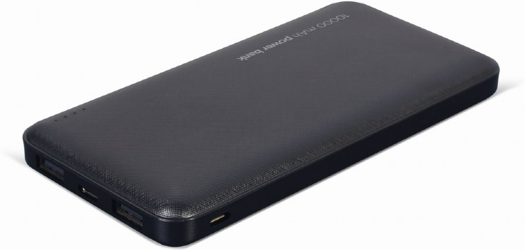 Gembird PB10-02. Capacidad de batería: 10000 mAh, Tecnología de batería: Polímero de litio, Voltaje de la pila: 3,7 V. USB A número de salidas: 2, Número de puertos USB Tipo C: 1. Potencia total de salida: 12 W, Corriente de salida: 2,4 A. Color del producto: Negro