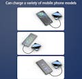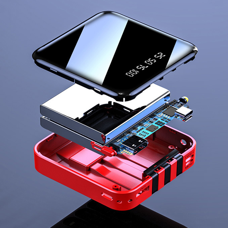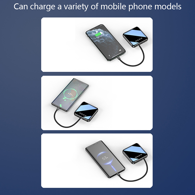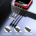 [High Capacity Fast Charging] With 20000mAH large capacity, this mini power bank is half the size of the other power banks. Charges 2.5 times faster with its powerful 18W PD and QC outputs, giving your mobile device instant charging in emergency situations. Charges your phone from 0% to 50% within just 30 minutes..[Built-in 3-in-1 Charging Cable] Built-in 3 charging cables include Type-C, Micro USB and Lightning connectors, along with a USB output, to ensure you can choose to charge 4 different devices at the same time. Compatible with various mobile phones, iPads, and computers, which is convenient to use on the go. No more need to tuck different charging cables in your bag next time you go out with different types of mobile phones or tablets..[Smart Display] The LED indicator displays the remaining power and charging status of the battery pack, allowing you to be kept updated with the latest usage of the power bank and the charging status of the device..[Built-in LED flashlight] This portable power bank has a built-in LED flashlight, which is bright enough to provide emergency lighting during expected events, helping you to better deal with the dark during blackouts..[Multiple Safety Protection] This product has passed CE, FC, RoSH, and other international safety compliance testing. Turn on or off at the touch of the power button. The built-in safety mechanism protects against over-voltage, overheat, overcharging, short circuits, high temperature, etc.