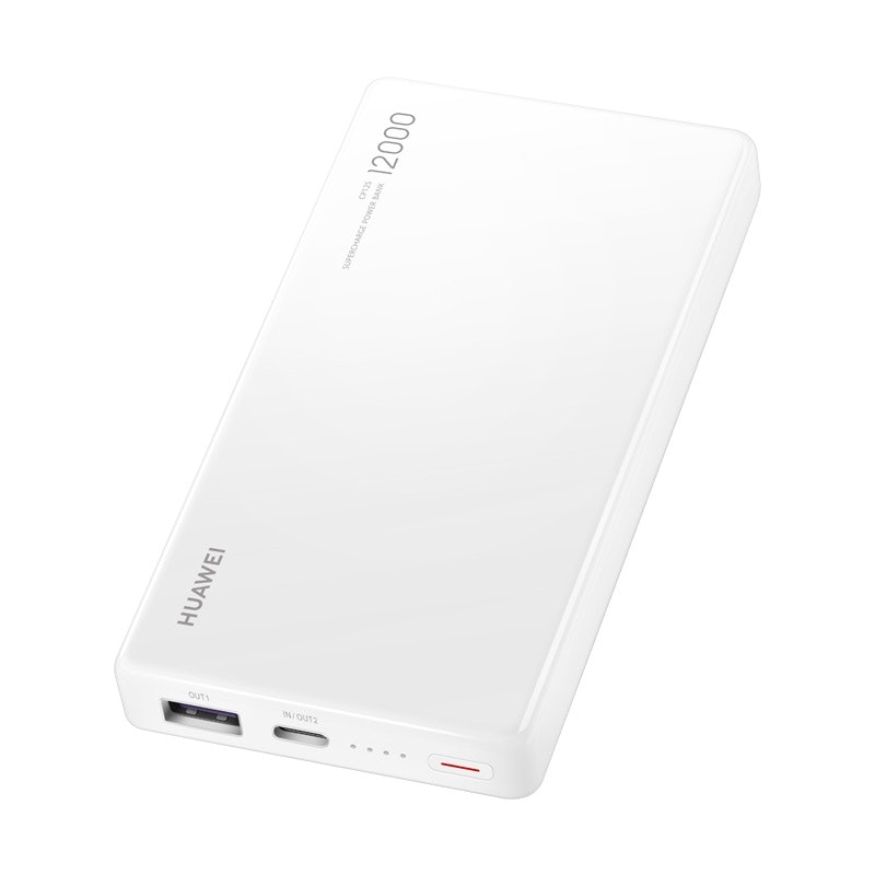 Huawei CP12S. Color del producto: Blanco, Compatibilidad del cargador: Universal. Capacidad de batería: 12000 mAh, Fuente de carga: USB, Voltaje de entrada: 20 V. Tipos de puertos USB de entrada: USB C. Ancho: 69 mm, Profundidad: 15,5 mm, Altura: 135,4 mm
