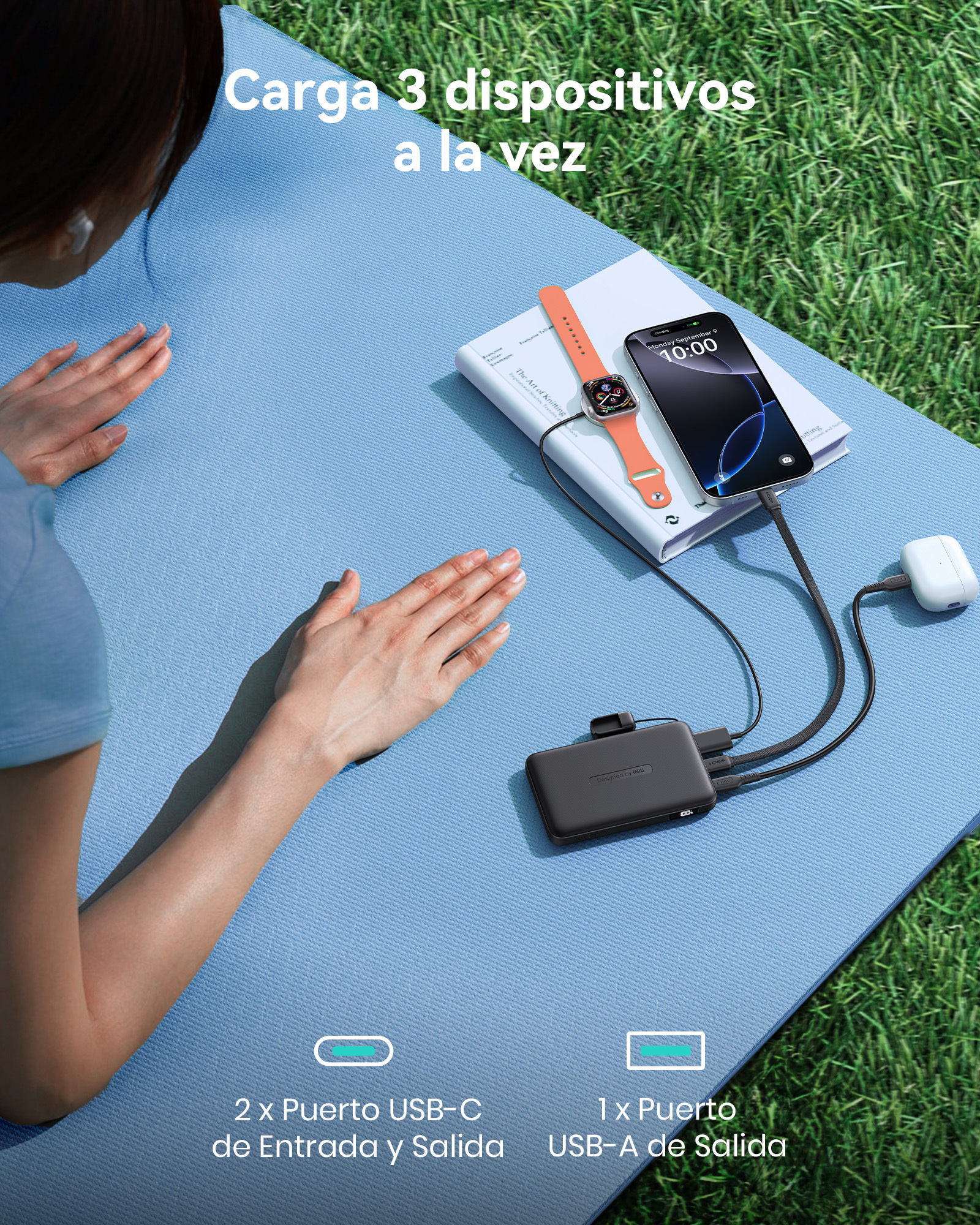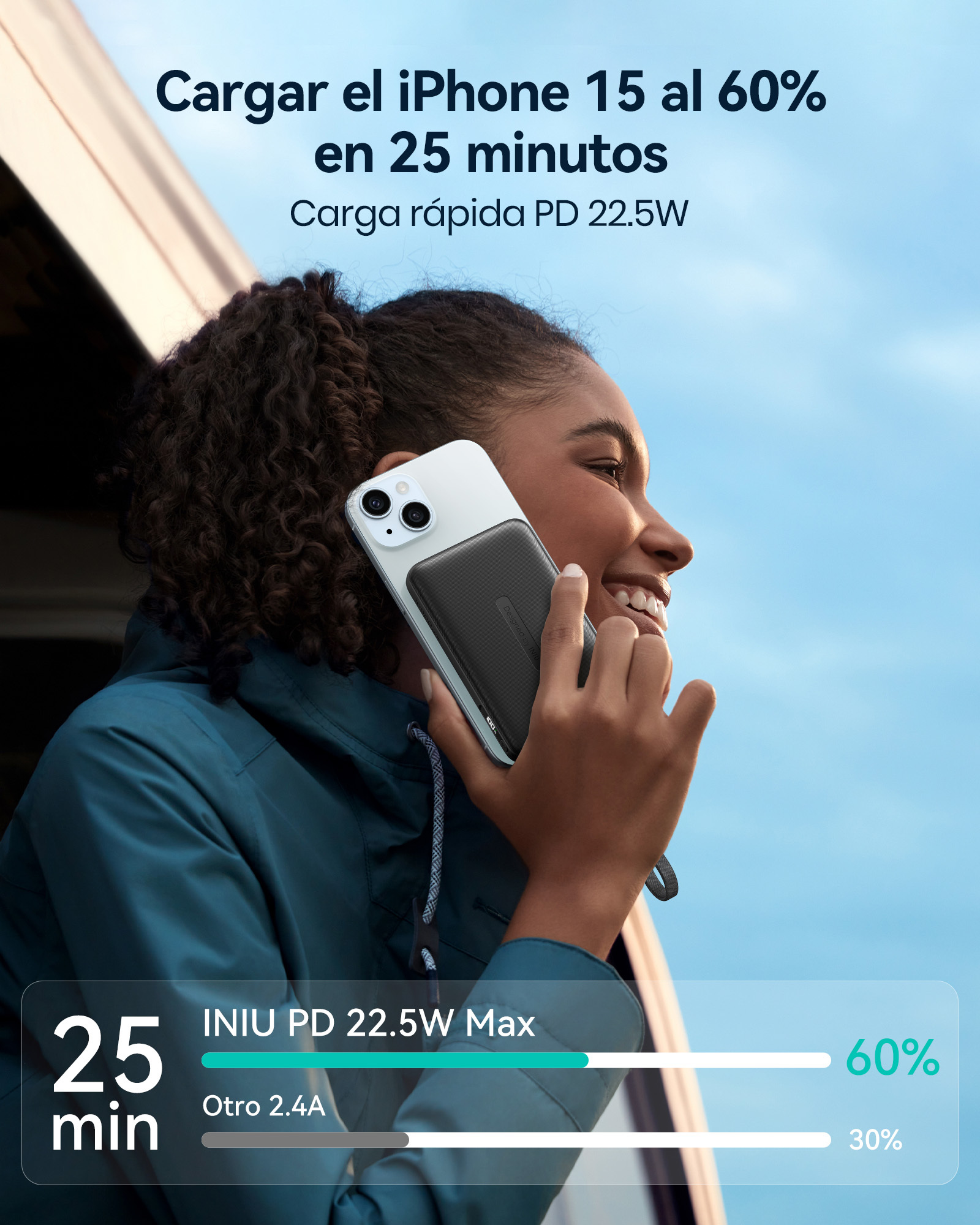 Cargar tu dispositivo en cualquier lugar es increíblemente fácil. Carga un iPhone 15 al 60% en solo 25 minutos, el doble de rápido que las baterías externas tradicionales. La pantalla digital muestra el nivel de batería y el progreso de la carga, para una experiencia de carga más inteligente y fluida.