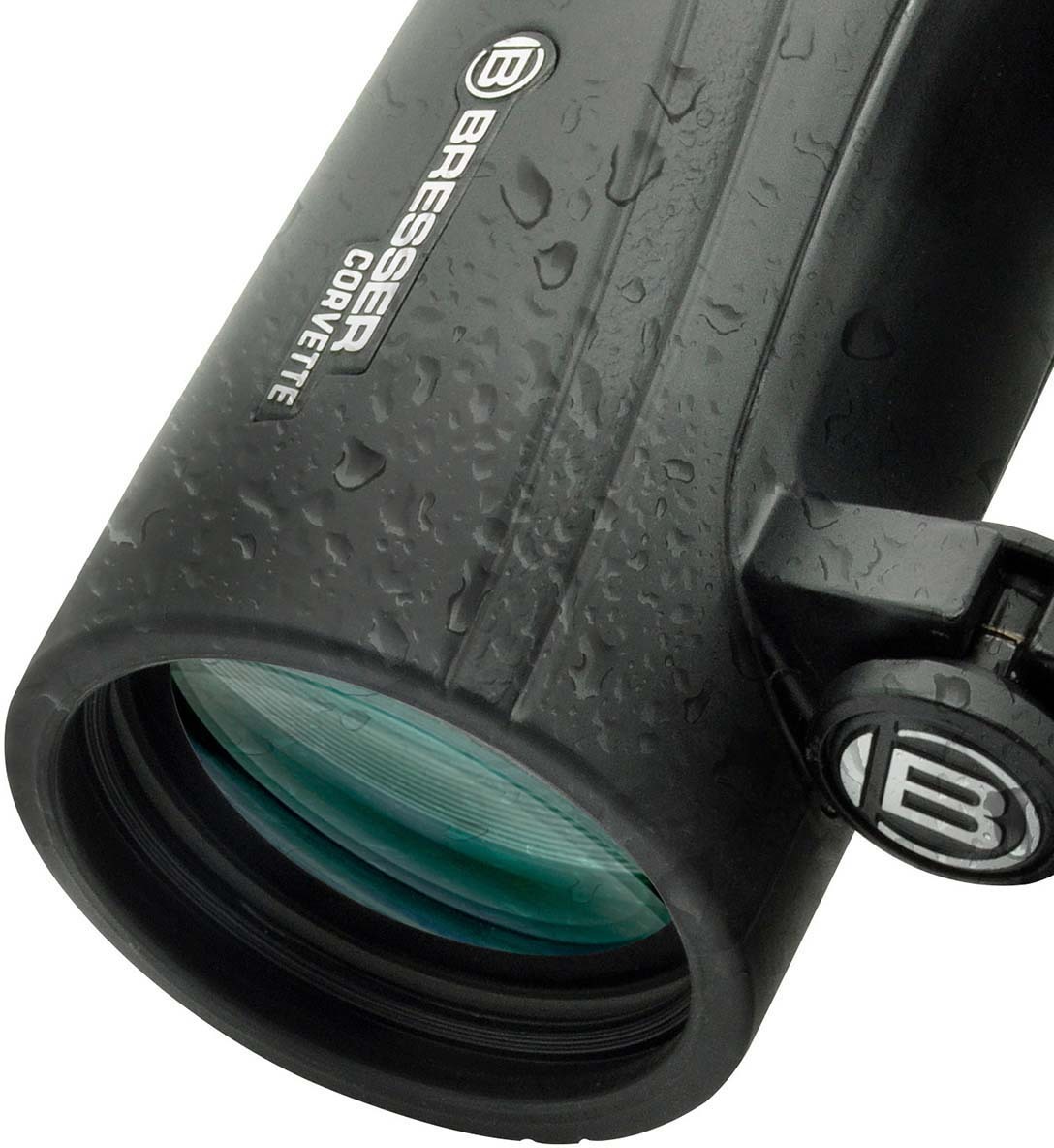 Los prismaticos BRESSER Corvette 8x42 convencen gracias a su excelente y nitida reproduccion de la imagen. Su mecanica precisa pone la guinda a este prismatico. Esta serie esta fabricada con material optico BaK-4 de gran calidad con una capa antireflejante multiple que ayuda a mejorar el contraste y el brillo. Para evitar que las lentes se empa?en, la lente esta?rellena de gas protector. Ademas las lentes son?impermeables.?