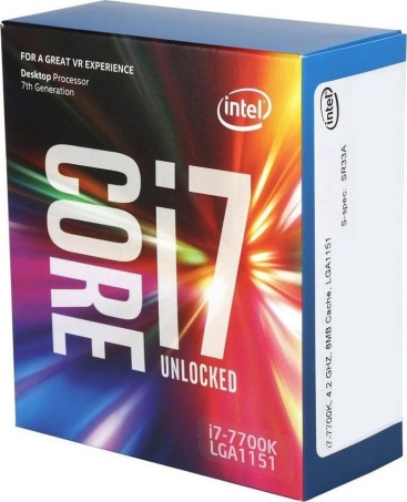 Intel i7-7700K, Core. Familia de procesador: 7ª generación de procesadores Intel® Core™ i7, Frecuencia del procesador: 4,2 GHz, Socket de procesador: LGA 1151 (Zócalo H4). Canales de memoria que admite el procesador: Dual, Memoria interna máxima que admite el procesador: 64 GB, Tipos de memoria que admite el procesador: DDR3L-SDRAM,DDR4-SDRAM. Modelo de adaptador gráfico incorporado: Intel® HD Graphics 630, Memoria máxima de adaptador de gráfico incorporado: 64 GB, Salidas compatibles de adaptador gráfico incorporado: DisplayPort,Embedded DisplayPort (eDP),HDMI. Potencia de diseño térmico (TDP): 91 W. Configuraciones PCI Express: 1x16,1x8+2x4,2x8, Set de instrucciones soportadas: AVX 2.0,SSE4.1,SSE4.2, Escalabilidad: 1S