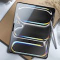 Protector de pantalla de cristal templado para Apple iPad Pro 13' 2024. Con un índice de dureza 9H para una protección resistente. Bordes biselados. Tratamiento antiarañazos y antiexplosiones. Calidad de visualización y fluidez táctil inalteradas, gracias a su delgadez.Características y Puntos fuertes: Protector de pantalla de cristal templado diseñado para proteger su [device_name] de golpes y arañazosCon dureza 9H, nunca se raya y proporciona una excelente protección para tu pantallaEn caso de choque extremo, su tratamiento antiexplosión evita que se rompaCon bordes biselados 2,5D, el cristal ofrece protección hasta el borde de la pantalla