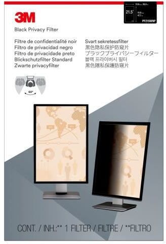 Filtro de privacidad de pantalla negro, mate y brillante de 3M - Para monitor de pantalla ancha de 54,6 cm (21,5) - 16:9"