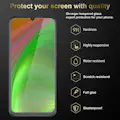 El cristal antibalas es, a proposito, mas peque?o de la pantalla de su Smartphone para no dificultar la fijacion de una funda adicional. La operabilidad de su movil esta mantenido asi como la solidez de color de la pantalla (99%) - Una proteccion casi invisible! La pelicula protectora esta fabricado de vidrio tratado especialmente (altamente calendado): es extremamente resistene a los ara?azos, repele la grasa y el aceite, repelente del polvo, no se hace pedazos y anti-huellas-dactilares. La pantalla de su Smartphone esta protegido perfectamente contra ara?azos y da?os causados por un caida o impacto - asi se puede aumantar la durabilidad de su movil! Cadorabo vidrio templado incluido una toallita de limpieza con alcohol y un pa?o de pulir y antiestatico.