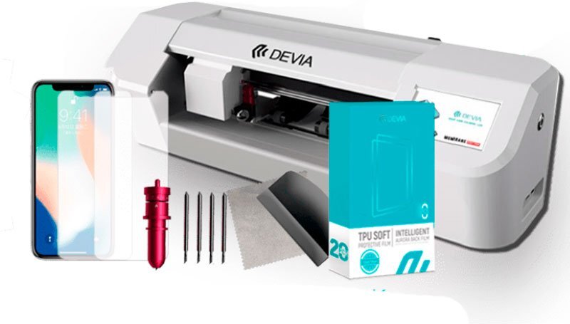 Plotter de Corte Devia + Accesorios y Láminas.Los protectores de hidrogel® es un material altamente resistente, flexible, duradero, y garantiza una alta protección contra arañazos, golpes e impactos. ¿Qué nos propociona el protector de Hidrogel?Alta dureza: Dureza superior a 3H.Excelente resistencia a la abrasión: El film resiste rayones.Ajuste perfecto: Permite un recubrimiento de protección perfecto para el modelo de dispositivo móvil seleccionado.Alta flexibilidad: Perfecto para aplicación en pantallas con bordes curvados.Auto reparación: La película de Hidrogel posee la función de auto-reparación de arañazos.Sin burbujas: Eliminación automática de burbujas pequeñas. ¿Para qué sirve el Plotter de corte?El plotter nos sirve para cortar nuestras láminas mediante software al modelo exacto que necesitamos en tan solo 30 segundos.En Devia contamos con la nueva generación de plotter de corte para crear protectores de pantalla con cuchilla metálica de tiburón de alta precisión. Para poder usar el Plotter necesitamos usar una APP pero, ¿cómo nos regitramos en APP Devia para poder utilizar el Plotter?https://www.youtube.com/watch?v=bzS8y61MbqA ¿Qué incluye la caja del Plotter?https://www.youtube.com/watch?v=9VVP1UXJ0n4 La máquina incluye formación y soporte de por vida.Aquí puedes ver los vídeos del canal oficial: https://www.youtube.com/channel/UCiWCyQU7EImhrLbo6l9nAagAquí una Review completa del producto:https://www.youtube.com/watch?v=0s3rbUytw-U