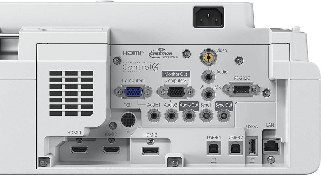 . Brillo de proyector: 3600 lúmenes ANSI, Tecnología de proyección: 3LCD, Resolución original del proyector: 1080p (1920x1080). Tipo de fuente luminosa: Laser, Duración de la fuente luminosa: 20000 h, Vida útil de la fuente luminosa (modo económico): 30000 h. Enfoque: Manual, Intervalo de longitud focal: 3.7 mm, Distancia focal fija: 3,7 mm. Procesamiento de vídeo: 10 bit, Modos de color de vídeo: Pizarra, Cine, Dinámico, Presentación, sRGB. Tipo de serie de interfaz: RS-232C, Tipo de conector HDMI: De tamaño completo