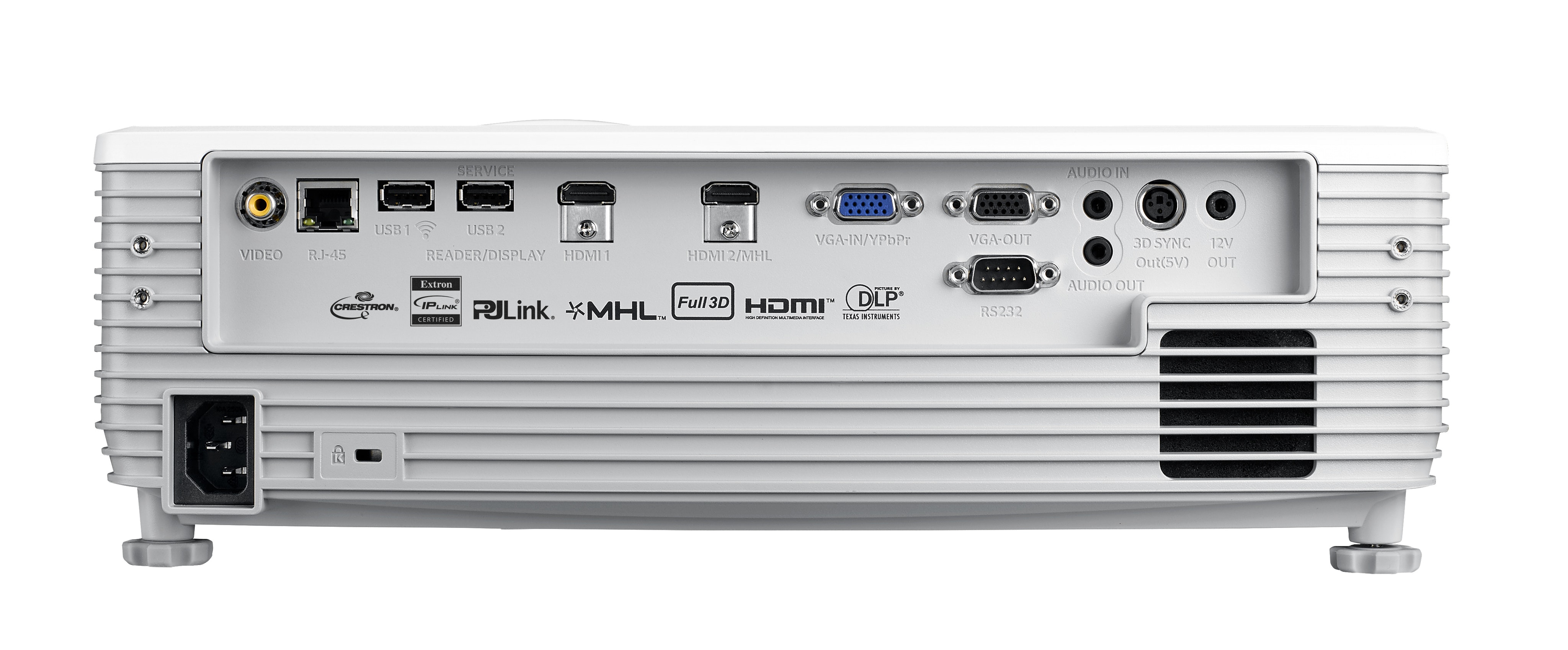 Optoma EH512. Brillo de proyector: 5000 lúmenes ANSI, Tecnología de proyección: DLP, Resolución original del proyector: 1080p (1920x1080). Duración de lámpara: 3000 h, Potencia de bombilla: 330 W, Vida de la lámpara (modo economico): 5000 h. Intervalo de longitud focal: 20,91 - 32,62 mm, Rango de apertura: 2,5 - 3,25, Tipo de zoom: Manual. Señal analógica: NTSC 3.58,NTSC 4.43,NTSC J,NTSC M,PAL 4.43,PAL B,PAL D,PAL G,PAL H,PAL I,PAL L,PAL M,PAL N,SECAM..., Formatos gráficos soportados: 640 x 480 (VGA),800 x 600 (SVGA),1024 x 768 (XGA),1280 x 1024 (SXGA),1280 x 720 (HD 720),1280 x..., Formato de vídeo soportado: 480i,480p,576i,576p,720p,1080i,1080p. Tipo de serie de interfaz: RS-232, Tipo de conector HDMI: De tamaño completo, Versión HDMI: 1.4a
