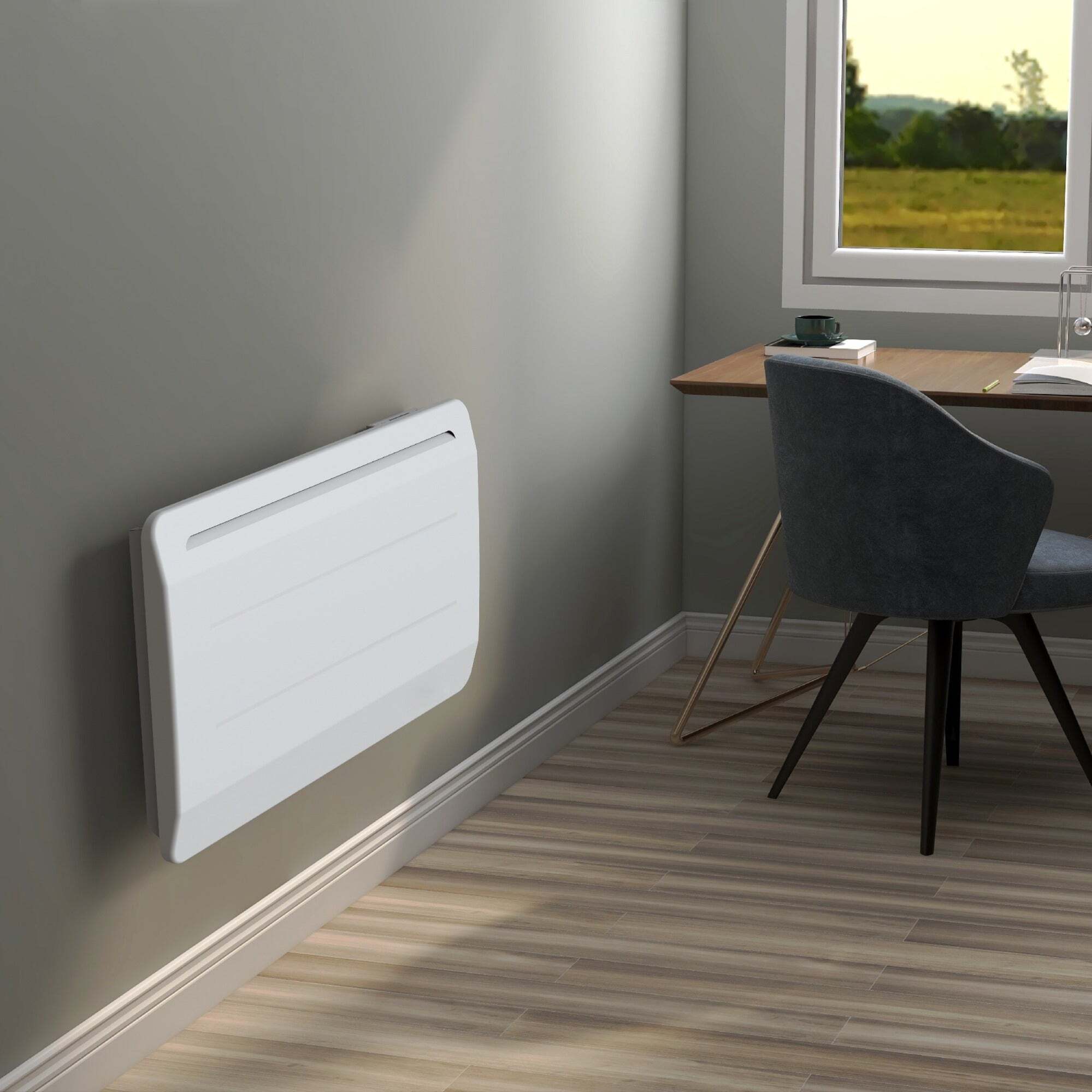 Calentador de inercia en seco, Control electrónico con pantalla digital LCD, 3 modos (Modo Confort, Modo Eco, Modo Protección contra heladas), 3 programas preinstalados, Programación diaria y por días, Detección de ventana abierta, Protección contra sobrecalentamiento, Cable piloto, Panel curvo, Nueva Directiva ERP(2015/1188), Clase II, IP24. Norma CE/NF/RoHS/ERP. 2 años de garantía.CARACTERÍSTICAS: Radiador eléctrico de inercia en seco FONTE 1500 W Volumen calentado: 20 m² Programación LCD. Nuevo diseño moderno y elegante. Diseño hecho en Francia. Color blanco. Calor suave. Núcleo de calentamiento: elementos de hierro fundido. Dimensiones: 70x11x45CM.PRINCIPIO DE FUNCIONAMIENTO: se compone de una placa de hierro fundido calentada por una resistencia que devuelve el calor durante varias horas. La fundición recoge y acumula el calor producido por las resistencias eléctricas integradas en el material y lo libera lentamente. La potencia de la inercia térmica depende del material elegido (cerámica, hierro fundido...) y del volumen del núcleo calefactor..VENTAJAS: Rápido aumento de la temperatura, calor homogéneo, mejor relación calidad-precio, consume menos energía que los calefactores radiantes o los paneles radiantes y sigue difundiendo el calor una vez apagado. Más cómodo que un calefactor de convección, se adapta suavemente a la temperatura deseada. La radiación del calor permite instalarlo en habitaciones grandes. La sensación de calor es suave y continua..INSTALACIÓN Y MANTENIMIENTO: Fácil instalación. Ideal para salas de estar como el salón o la habitación de los niños. No requiere mantenimiento. Dispositivo de seguridad térmica de rearme automático. Montaje en la pared con cerradura. Kit de fijación incluido. 2 años de garantía. Empresa francesa con sede en Francia. Normas CE y NF.