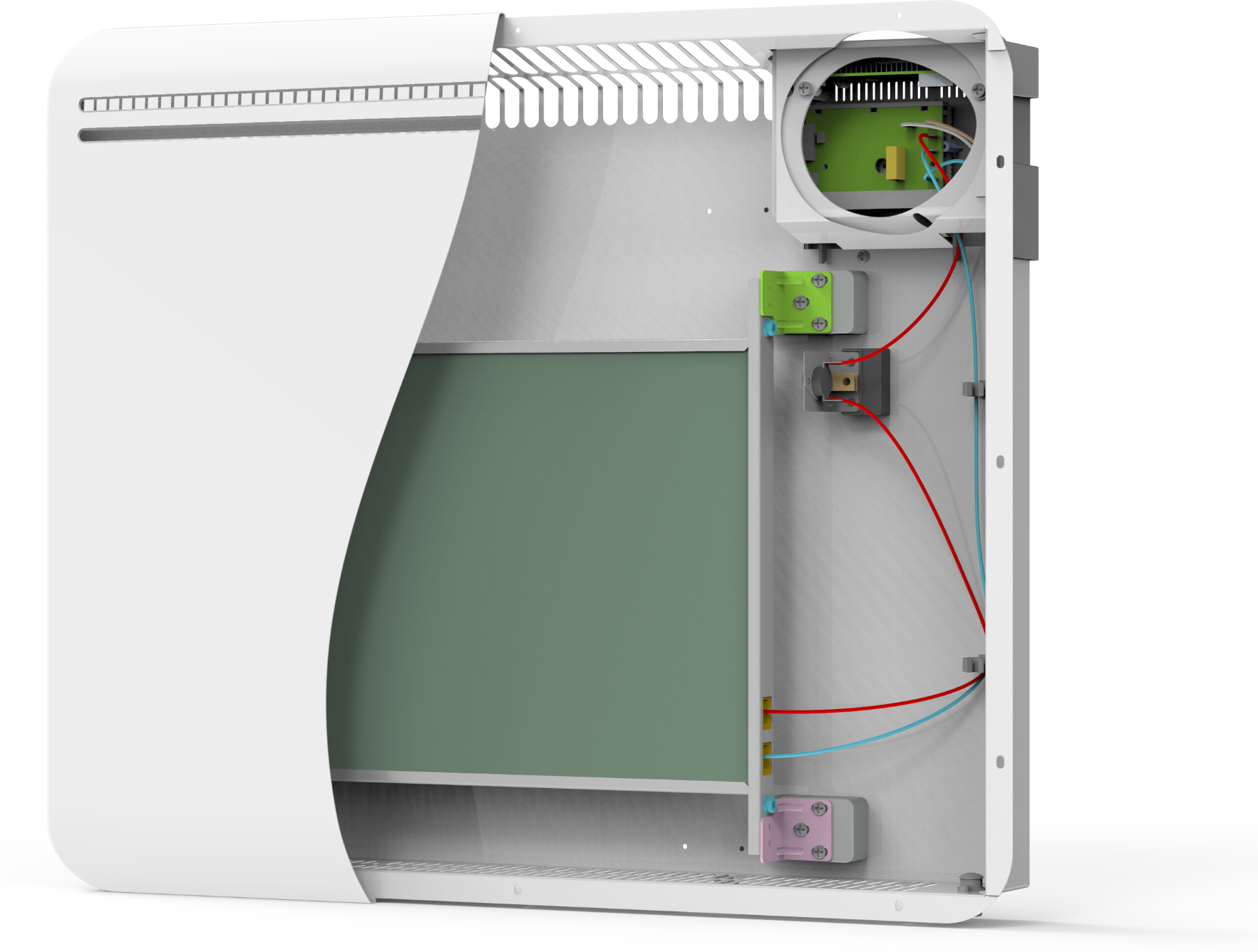 Calentador de inercia en seco, Control electrónico con pantalla digital LCD, 4 modos (confort, normal, eco y protección contra las heladas), 9 programas preinstalados, Programación diaria y semanal, Detección de ventana abierta, Protección contra el sobrecalentamiento, Cable piloto de 6 órdenes, Panel curvo, Nueva Directiva ERP(2015/1188), Clase II, IP20. Norma CE/NF/RoHS/ERP. 2 años de garantía.CARACTERÍSTICAS: Radiador eléctrico de inercia seca CERÁMICA 1500 W Volumen calentado: 20 m² Programación LCD. Nuevo diseño moderno y elegante. Diseño hecho en Francia. Color blanco. Calor suave. Núcleo de calentamiento: elementos cerámicos. Dimensiones: 82x9xH50cm.PRINCIPIO DE FUNCIONAMIENTO: se compone de una piedra calentada por una resistencia que devuelve el calor durante varias horas. La piedra recoge y acumula el calor producido por las resistencias eléctricas integradas en el material y lo libera lentamente. La potencia de la inercia térmica depende del material elegido (cerámica, hierro fundido...) y del volumen del núcleo calefactor..VENTAJAS: Rápido aumento de la temperatura, calor homogéneo, mejor relación calidad-precio, consume menos energía que los calefactores radiantes o los paneles radiantes y sigue difundiendo el calor una vez apagado. Más cómodo que un calefactor de convección, se adapta suavemente a la temperatura deseada. La radiación del calor permite instalarlo en habitaciones grandes. La sensación de calor es suave y continua..INSTALACIÓN Y MANTENIMIENTO: Fácil instalación. Ideal para salas de estar como el salón o la habitación de los niños. No requiere mantenimiento. Dispositivo de seguridad térmica de rearme automático. Montaje en la pared con cerradura. Kit de fijación incluido. 2 años de garantía. Empresa francesa con sede en Francia. Normativa CE y NF.