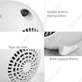 Nombre del producto: Calentador de espacios en blanco Categoría: Electrodomésticos Especificaciones: 3600 rpm Potencia: 250 W Salida de aire: diámetro 12 CM Voltaje nominal: 220 V-50 Hz Tipo de enchufe: UE Tamaño: 163 * 160 * 153 mm Longitud del cable: 113 CM Tamaño: 16,0 cm * 15,0 cm * 16,0 cm Peso: 0,6 kg Color blanco Modo de alimentación: CC Voltaje: 220v/110v Temperatura ajustable: tres engranajes Pasos ajustables