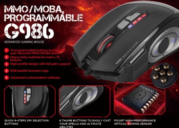 Scorpion Raton Gaming Led RGB - 12 Botones macro y pesas (MA-G986)
