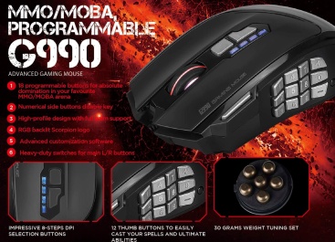Scorpion Raton Gaming Led RGB - 18 Botones macro y pesas (MA-G990)