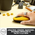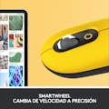 Logitech POP Mouse with emoji. Factor de forma: Ambidextro. Tecnología de detección de movimientos: Óptico, Interfaz del dispositivo: RF inalámbrica + Bluetooth, Resolución de movimiento: 4000 DPI, Tipo de botones: Botones presionados, Cantidad de botones: 4, Tipo de desplazamiento: Rueda. Fuente de energía: Baterías. Color del producto: Amarillo