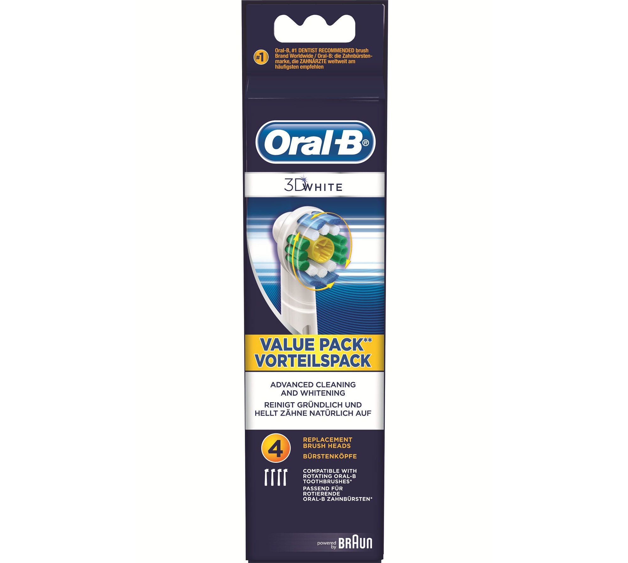 Oral-B 3D White. Número de cabezales incluido: 4 pieza(s), Color del producto: Multicolor, Peso: 22 g