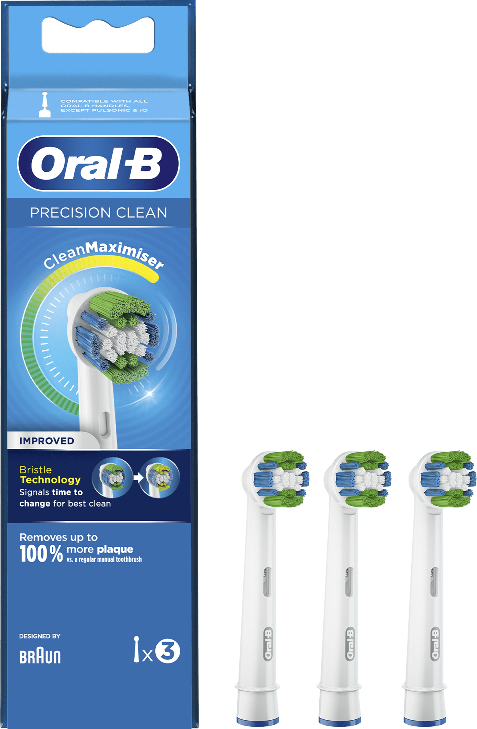 Oral-B 80338442. Número de cabezales incluido: 3 pieza(s), Color del producto: Azul, Verde, Blanco, Tecnologías específicas: CleanMaximiser. Ancho del paquete: 18 mm, Profundidad del paquete: 60 mm, Altura del paquete: 220 mm. Cantidad por paquete: 3 pieza(s), Ancho de la caja principal: 12,4 cm, Longitud de la caja: 14,9 cm