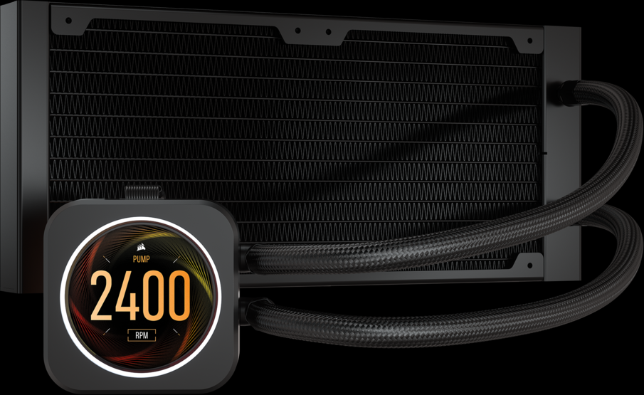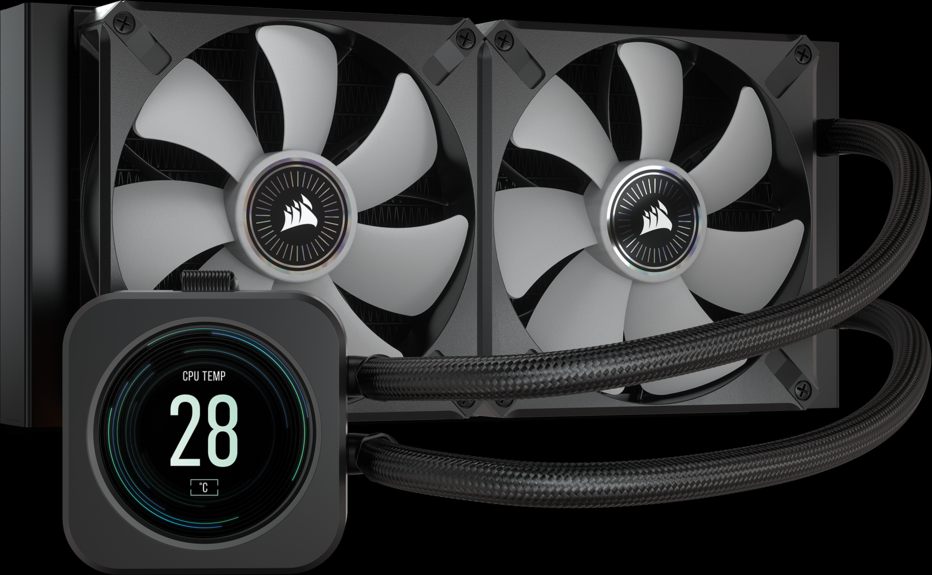 Corsair Wasserkühler ICue H100i Elite LCD. Utilizar con: Procesador, Número de ventiladores: 2 Ventilador(es), Sockets de procesador soportados: LGA 1200 (Socket H5), LGA 2011 (Socket R), LGA 2066, Zócalo AM4, Socket sTRX4. Tipo: Interno, Tipo de visualizador: LCD, Iluminación de color: Rojo/Verde/Azul. Ancho: 240 mmDesempeñoUtilizar conProcesadorVentilador integradoSiRadiadorSiCompatible con modulación por ancho de pulsos (PWM)SiSockets de procesador soportadosLGA 1200 (Socket H5), LGA 2011 (Socket R), LGA 2066, Zócalo AM4, Socket sTRX4DiseñoTipoInternoTipo de visualizadorLCDIluminación de colorRojo/Verde/AzulColor del productoNegro.Refrigerador de CPU con LCD premium todo en uno: Combina una potente refrigeración silenciosa y una intensa iluminación RGB con una pantalla LCD personalizada, que ofrece gráficos personalizados.,Pantalla LCD IPS brillante: Visualice la temperatura de su CPU en tiempo real, su GIF animado favorito, el logotipo de su equipo o lo que quiera en una pantalla LCD IPS de 2,11” personalizada.,Decida el tema de su pantalla: Una variada biblioteca de temas ricos en colores le permite ver la información vital del sistema en atrevidos estilos de visualización que se adaptan a su sistema.,Cabezal de bomba de alto rendimiento con anillo LED RGB: Proporciona una refrigeración potente y silenciosa para su CPU, con un anillo de 24 LED RGB direccionables que rodean la pantalla.,CORSAIR iCUE COMMANDER CORE incluido: Un controlador de velocidad de los ventiladores e iluminación RGB inteligente le brinda un control preciso de la velocidad.Especificaciones: .Utilizar con: Procesador . | Tipo: Interno . | Tipo de visualizador: LCD . | Iluminación de color: Rojo/Verde/Azul . | Color del producto: Negro . | Marca: ?Corsair . | Número de modelo del producto: ?CW-9060061-WW