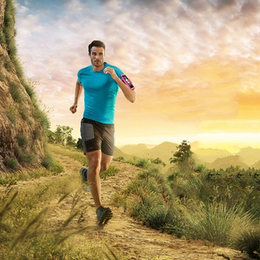 Brazalete deportivo para Smartphone de hasta 5,2 pulgadas. Con membrana táctil. Impermeable. Cierre con correa adhesiva ajustable. Con aberturas para auriculares y cable cargador. Con bolsillo para las llaves.