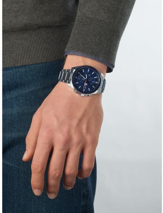 revestimiento de neobrita; Indicación de fecha; Función de temporización - 1/10 seg - 1 h; Vidrio mineral; Caja de acero; Bisel chapado en iones; fondo de caja atornillado; pulsera de acero inoxidable; cierre de seguridad; 2 años - 1 batería; Clase de estanqueidad (10 bar)