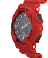 Reloj de resina con pulsera roja. Esfera negra, equipada con una pantalla digital y una cuenta atrás. Contadores de día/fecha/mes, manecilla de 12/24 horas. Movimiento de cuarzo. Reloj resistente a una presión de 20 ATM.