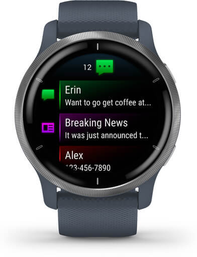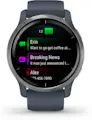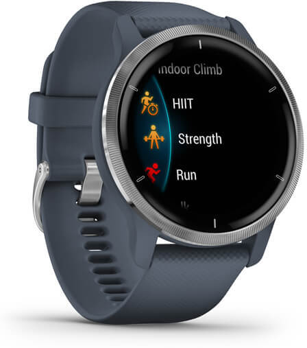 Cuando estás en movimiento, estás mejor. Conecta mente y cuerpo con la serie Venu 2. El nuevo smartwatch con GPS de Garmin incluye funciones para el control del bienestar y el estado físico para ayudarte a entender mejor lo que sucede en tu cuerpo. Realiza un seguimiento de tus actividades con entrenamientos animados y más de 25 aplicaciones deportivas para “indoor” y exterior gracias a los sensores GPS. Lleva contigo tu música favorita, almacena hasta 650 canciones en tu smartwatch y escúchalas con tus auriculares inalámbricos (se venden por separado). Disfruta de hasta 11 días de autonomía para Venu 2, hasta 10 días para Venu 2S y recarga la batería rápidamente gracias a la carga rápida para un seguimiento interrumpido de tu bienestar. Las funciones de seguridad y seguimiento incluyen detección de incidentes (durante la actividad) y asistencia, para enviar una alerta y ubicación a tus contactos de emergencia (smartphone conectado). Puedes pagar desde tu reloj de la manera más rápida, cómoda y segura con Garmin Pay. Así puedes dejar tu dinero y tarjetas en casa. Registra las diferentes etapas y la calidad del sueño basado en tu frecuencia cardíaca, el estrés, la pulsioximetria y la respiración. Incluso obtendrás una puntuación con respecto a la calidad del sueño y consejos sobre cómo puedes mejorarlo. Las correas compatibles con Venu 2 son las quick-releease de 22 mm. El tamaño de las correas es de 135-200 mm..Cuenta con más de 25 aplicaciones deportivas para el exterior monitorizadas con GPS y de interior, que incluyen caminar, correr, bici, pilates, HIIT, escalada interior, yoga, natación, golf y mucho más.,Conoce mejor tu cuerpo con las funciones de seguimiento de la actividad diaria. Mide tu nivel de energía con Body Battery, la calidad del sueño, la edad fisiológica, el seguimiento del estrés y mucho más. Calcula la edad fisiológica basada en tu frecuencia cardíaca en reposo, tu peso y la actividad diaria.,Recibe notificaciones inteligentes de tu Smartphone directamente en tu reloj. Puedes pagar desde tu reloj de la manera más rápida, cómoda y segura con Garmin Pay.,Descarga tus listas de reproducción o música de Spotify, music o Deezer y escúchala en auriculares o dispositivos de audio Bluetooth sin necesidad de teléfono móvil.,Disfruta de 11 días de autonomía en Venu 2 y hasta 10 días para Venu 2S en modo smartwatch. En modo GPS con música tendrás hasta 8 horas en Venu 2 y hasta 7 horas en Venu 2S. Recarga la batería rápidamente gracias a la carga rápida para un seguimiento interrumpido de tu bienestar.Especificaciones: .Marca: Garmin . | Color: Azul Grafito . | Forma: Redondo . | Tamaño de pantalla: 1.3 Pulgadas . | Dispositivos compatibles: PC, Android, iPhone . | Tecnología de conectividad: GPS, GLONASS, Galileo, Wi-Fi, Bluetooth, ANT+ . | Tipo de material de la banda: Silicona . | Reproductor de música: Si . | GPS (satélite): Si . | Tamaño del cuerpo del reloj: 45 mm . | Peso: 49 g . | Pantalla táctil: Si