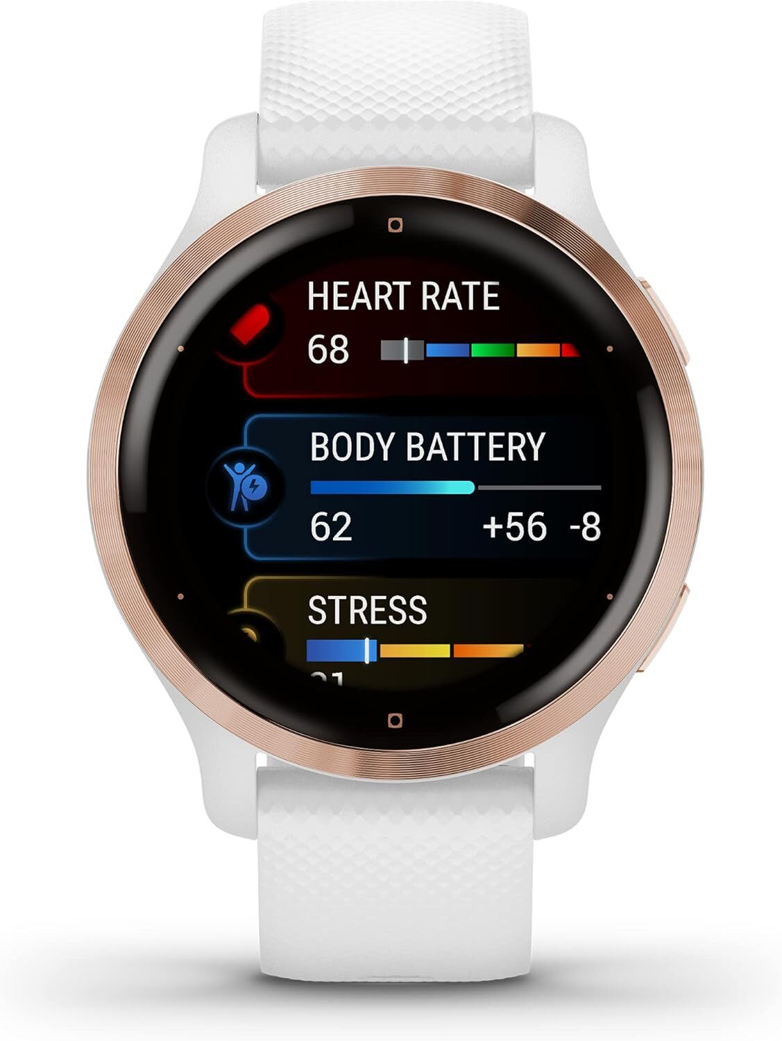 Cuando llevas una vida sana, vives mejor. Este smartwatch con GPS cuenta con funciones de control de la salud y de ejercicio avanzadas para ayudarte a entender mejor lo que sucede dentro de tu cuerpo..Cuando llevas una vida sana, vives mejor. Este pequeño smartwatch con GPS cuenta con funciones de control de la salud y de ejercicio avanzadas para ayudarte a entender mejor lo que sucede dentro de tu cuerpo.,Realiza un seguimiento de más estadísticas de salud y obtén más detalles de lo que sucede dentro de tu cuerpo.,Encuentra nuevas formas de moverte gracias a las más de 25 aplicaciones deportivas preinstaladas.,¿Quieres asesoramiento? Sigue las sesiones de entrenamiento animadas desde tu muñeca.,Toca el reloj para pagar. Fácil y sin contacto.Especificaciones: .Marca: Garmin . | Forma: Redondo . | Color: Blanco Rose Gold . | Estilo: Venu 2S . | Función especial: GPS, GLONASS y Galileo, Resistente al agua, 5 ATM, Wi-Fi, Bluetooth y ANT+ . | Tamaño de pantalla: 1.1 Pulgadas . | Aplicación compatible: Contactos, GPS, Teléfono . | Dispositivos compatibles: Android, iPhone, PC . | Tipo de material de la banda: Silicona . | EAN: 0753759271909