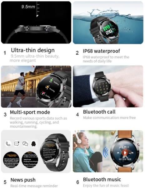 Esta es una pulsera inteligente [Diseño]: 1.28 pantalla a color de alta definición de círculo completo Resolución de ultra alta definición de 240 * 240 píxeles ? [Función]: a través de la luz LED del sensor de luz verde, análisis en tiempo real del flujo sanguíneo y pantalla de frecuencia cardíaca y presión arterial, puede ver datos más completos a través de la aplicación del teléfono móvil ?[U