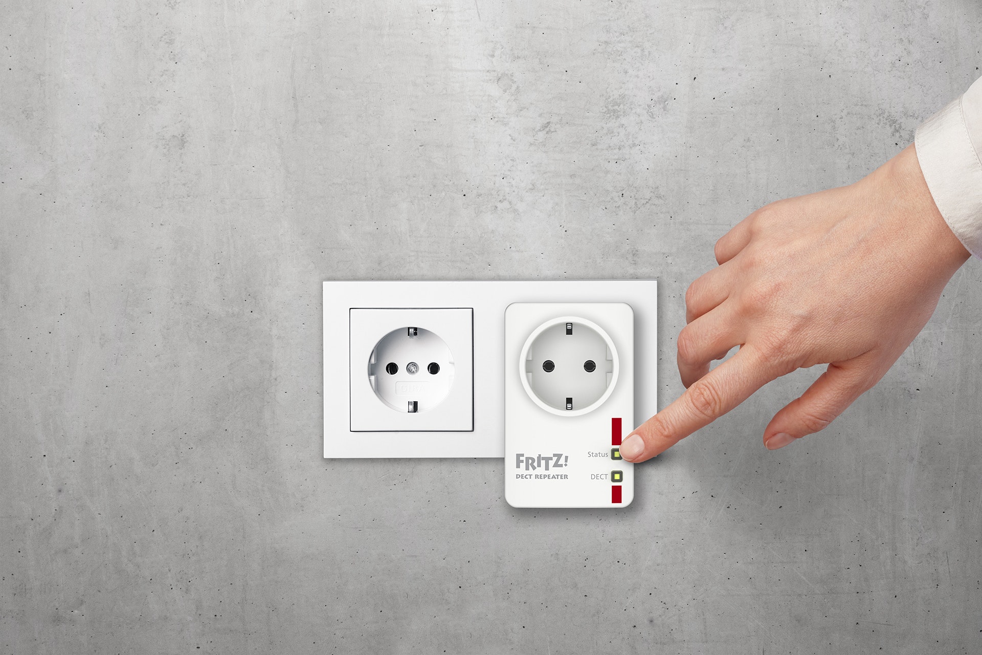 Funciones especiales\n•Amplía el área de recepción y emisión de los teléfonos inalámbricos y servicios DECT.\n•En combinación con un FRITZ!Box como base, conversaciones telefónicas seguras y cifradas.\n•Posibilidad de establecer hasta tres conversaciones simultáneas.\n•Permite el traspaso automático de llamadas a través de DECT, de tal manera que durante una llamada se pueda alternar entre la base y el repetidor sin que haya interrupciones.\n•Función de repetidor también para telefonía HD, radio por Internet y contenido RSS con el FRITZ!Box como base.\n•Sensor de temperatura.\n•Registro de la variación de temperatura en las últimas 24 h.\n•Sensor de temperatura integrado.\n•Posibilidad de ampliar con otros FRITZ!DECT Repeater el alcance en cualquier dirección.\n•Compatible con estaciones base DECT con el estándar GAP (funciones básicas) y con la función de repetidor activa.\n•Toma de corriente integrada: no se pierde ninguna toma.\n•Puesta en funcionamiento rápida: tan fácil como encender y presionar el botón DECT del FRITZ!Box.\n•El monitor DECT del FRITZ!Box mostrará información acerca del estado de funcionamiento del repetidor.\n•Botón DECT: para encender y apagar el repetidor desde la base.\n•Botón de estado: para encender o apagar los indicadores led en el repetidor.\n•Actualizaciones automáticas del software a través del FRITZ!Box.\nConexiones\n•Conexión a la corriente eléctrica de 230 voltios, 50 Hz en una toma de tipo F (Schuko, CEE 7/4).\n•Estándar DECT\n•Para los dispositivos conectados hasta 2.300 vatios/10 A.\n\nRequerimientos del sistema\n•Una toma de corriente de 230 voltios.\n•FRITZ!Box con base DECT y FRITZ!OS 5.50 (o superior) u otra base DECT con función de repetidor (GAP).\n\nContenido del paquete\n•FRITZ!DECT Repeater 100.\n•Guía rápida de instalación.\n\nNúmero de artículo\n•20002641
