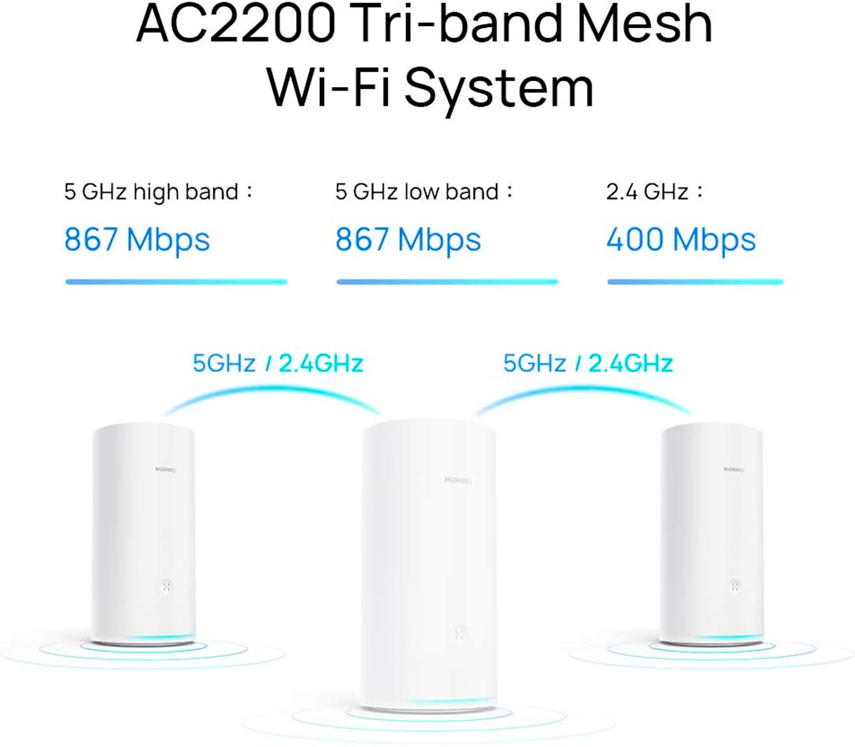 Sistema Wi-Fi Mesh para toda la casa HUAWEI ROUTER WIFI MESH 256+128MB acabado en color blanco, cobertura Wi-Fi perfecta para el hogar, llega a todos los rincones, máxima cobertura Wi-Fi, conexión con un toque, triple banda AC220.