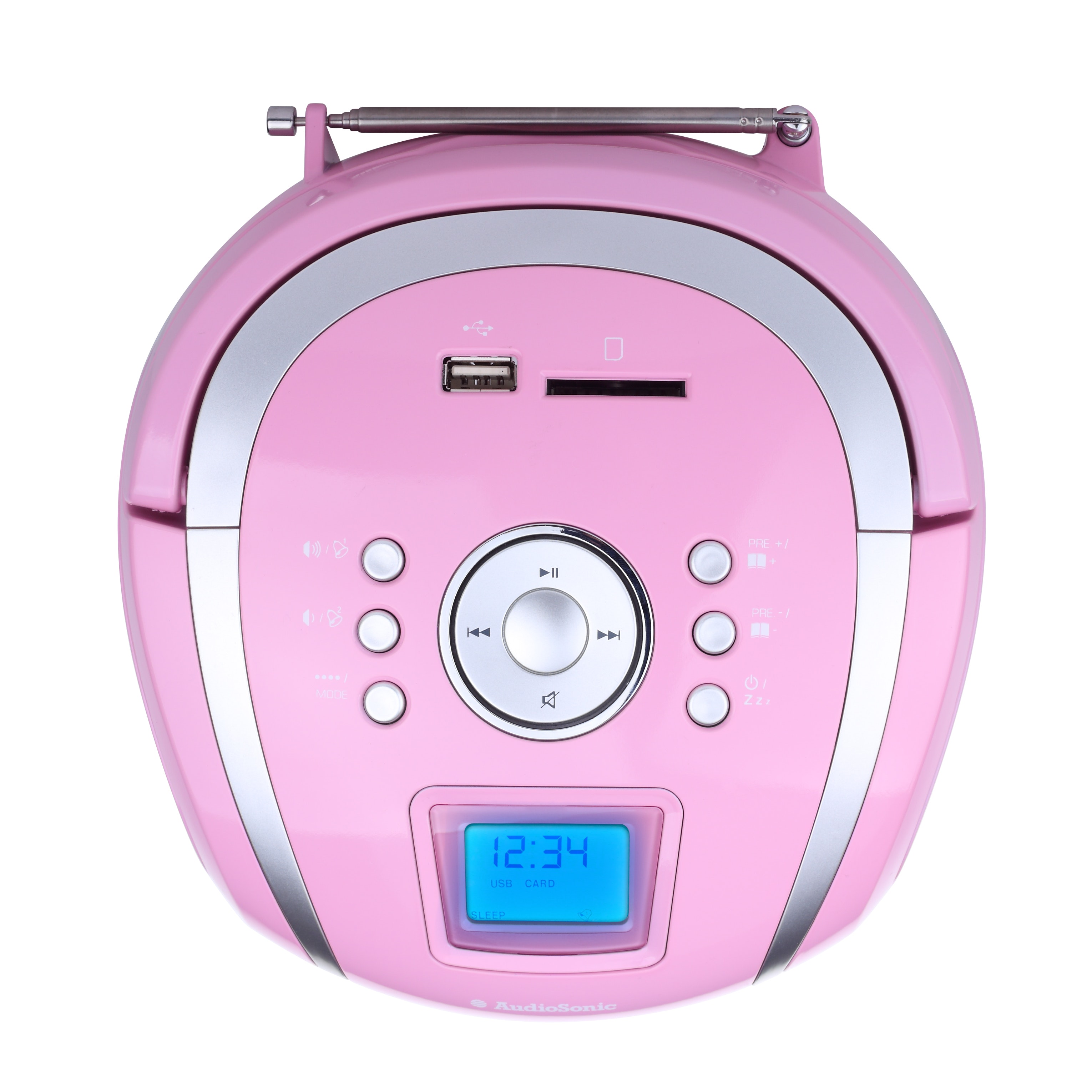 . Tipo de radio: Personal, Tipo de sintonizador: Digital, Bandas de radio soportadas: FM,MW. Potencia estimada RMS: 4 W. Tipo de visualizador: LCD, Color de luz de fondo: Azul. Auriculares: 3,5 mm, Conector USB: USB tipo A. Color del producto: Rosa, Plata, Control de volumen: Digital, Tipo de antena: Externo