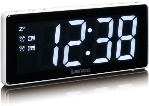 Lenco CR-30. Tipo de radio: Reloj, Bandas de radio soportadas: FM. Tipo de visualizador: LCD, Diagonal de la pantalla: 7,62 cm (3""). Color del producto: Blanco, Material: Plástico, Coloración: Monótono. Alimentación: Corriente alterna, Consumo energético: 3,5 W, Consumo de energía (inactivo): 0,55 W. Ancho: 255 mm, Profundidad: 55 mm, Altura: 120 mm