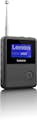 - Radio de bolsillo con DAB+\n- 5 presintonías en FM\n- Pantalla LCD\n- Batería recargable (Lithium Polymer) integrada 1100mAh\n- Capacidad de la batería: hasta 4 horas\n- Antena telescopica, Auricular\n- Incluye: Cable micro USB, Auricular\n- Conexiones: Entrada micro USB sólo para función de carga