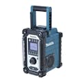 Makita DMR107. Tipo de radio: Worksite, Bandas de radio soportadas: AM,FM, Banda FM: 87,5 - 108 MHz. Potencia estimada RMS: 7 W. Color del producto: Negro, Turquesa, Control de volumen: Giratorio, Funciones de protección: Resistente al agua. Tecnología de batería: Ión de litio. Alimentación: Batería, CC