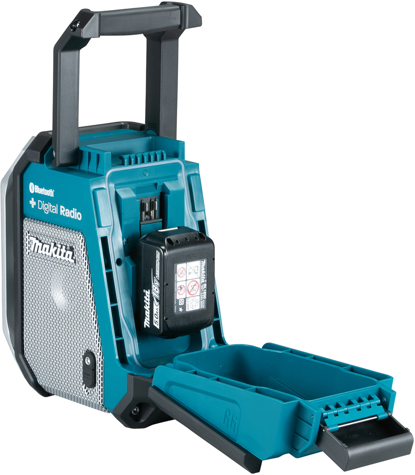 Makita DMR114. Tipo de radio: Lugar de trabajo, Bandas de radio soportadas: DAB,DAB+,FM, Banda FM: 87.5 - 108 MHz. Color del producto: Negro, Azul. Alimentación: Batería. Ancho: 164 mm, Profundidad: 268 mm, Altura: 295 mm