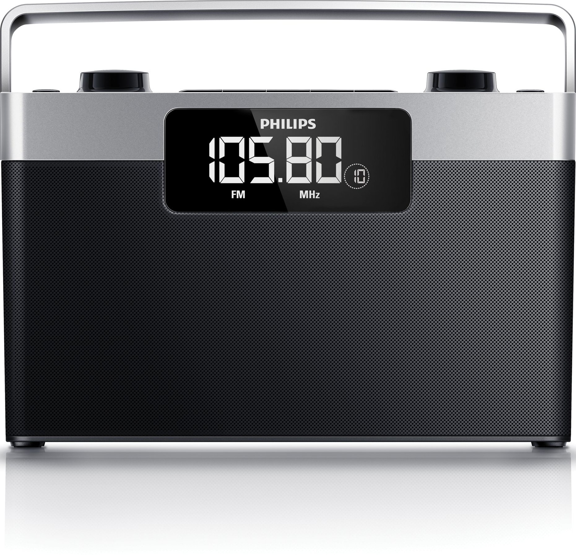Disfruta de tu emisora de radio favorita con sólo una pulsación para presintonizar emisoras\nDisfruta de tus emisoras FM/MW favoritas con sólo una pulsación en tu radio portátil de Philips. La\nsintonización digital y las 20 presintonías con una sola pulsación hacen que esta radio sea muy fácil de usar. La gran pantalla LCD retroiluminada proporciona una fácil visualización incluso con poca luz.\n\nDisfruta de tus emisoras favoritas\n- Sintonizador digital con presintonías para una mayor comodidad\n- Toma para auriculares estéreo para mayor y más personal disfrute de la música\n\nFácil de usar\n- Función de reloj integrado\n- Pantalla grande LCD retroiluminada que facilita la visualización con poca luz\n- Altavoz integrado para disfrutar de la radio a todo volumen con una calidad de sonido\n- excepcional\n- El indicador de batería baja te mantiene informado del nivel de energía\n- Funciona con pilas o conectado a la red para una colocación versátil