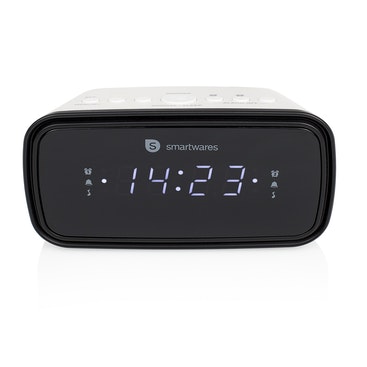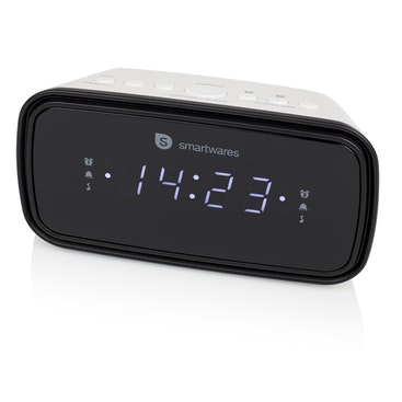 Con el reloj despertador Smartwares CL-1515 podrá despertarse con su emisora de radio favorita. Además, el reloj despertador cuenta con dos alarmas y función de repetición.\n\nNo llegue nunca tarde\nEste reloj despertador cuenta con dos alarmas para que pueda establecer una para su pareja y otra para usted mismo, o dos para usted mismo si le cuesta mucho levantarse. Además, puede utilizar una batería auxiliar para asegurarse de que se despierta a tiempo si se produce un corte del suministro eléctrico.\n\nAlarma o radio\nElija cómo quiere despertarse: con una alarma o con la radio. La radio busca automáticamente las mejores frecuencias y guarda emisoras almacenadas. Por lo tanto, podrá despertarse siempre con su emisora de radio favorita.