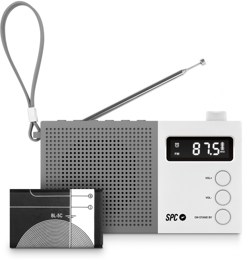 SPC Jetty Max te permitira llevar la musica a donde quieras gracias a su asa. Te permite almacenar hasta 50 emisoras y despertarte con tu preferida.PORTATIL | DIGITAL | RELOJ | DESPERTADOR | ANTENA TELESCoPICA | BATERiA RECARGABLEDATOS TeCNICOSAlmacena 50 emisorasRelojFuncion despertador (Radio/ Tonos)Antena telescopica de alta sensibilidadConexion para auriculares 3.5mmALIMENTACIoNFunciona con bateria recargable de 3.7V 400mAh (incluida) o 4 pilas alcalinas AAA tipo LR03 1.5V (no incluidas)Cable DCDIMENSIONES Y PESODimensiones: 180x48x115 mmPeso: 166gCONTENIDO DE LA CAJARadio SPC JettyGuia rapida