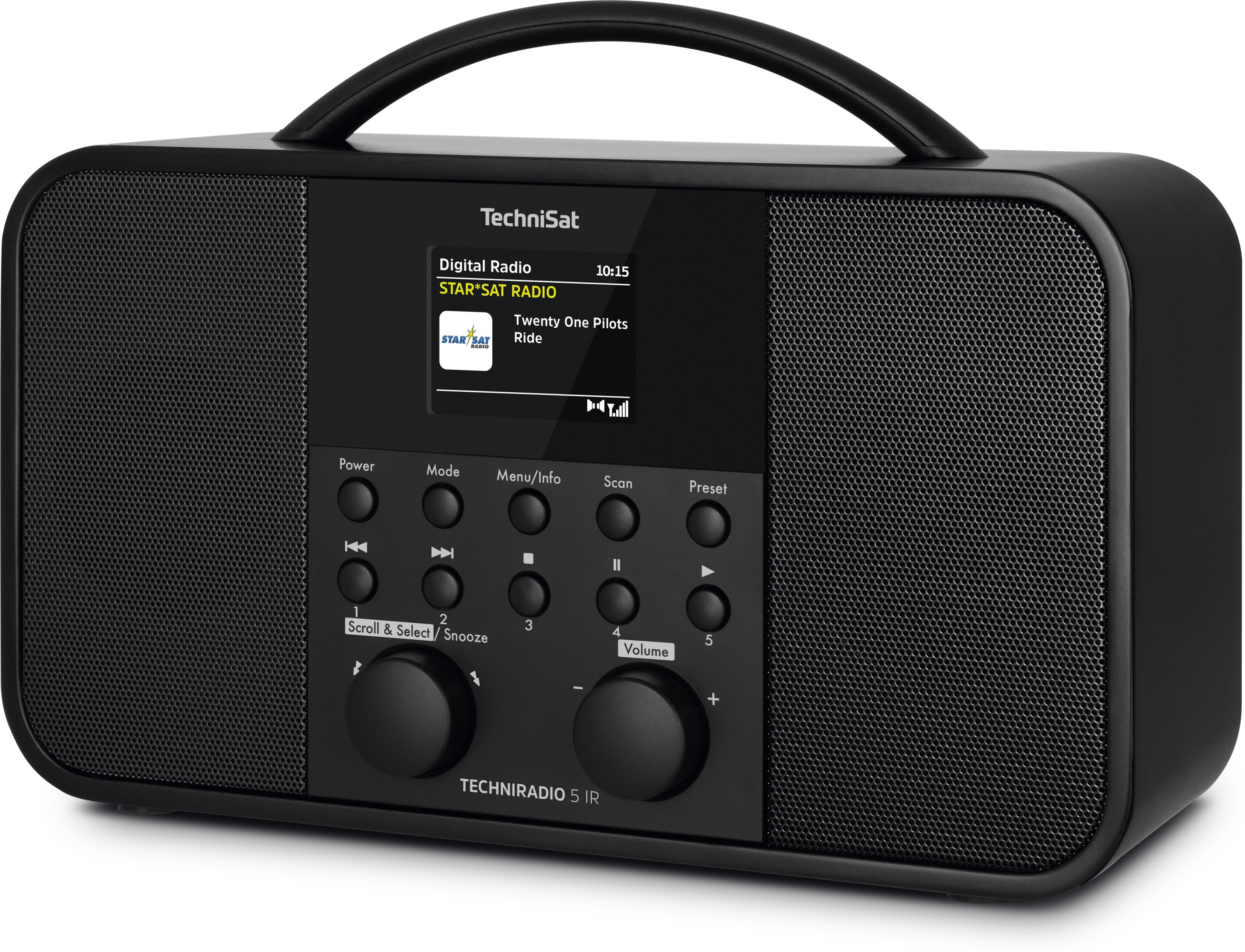 TechniSat 5 IR. Tipo de radio: Portátil, Tipo de sintonizador: Digital, Bandas de radio soportadas: DAB,UKW. Potencia estimada RMS: 10 W. Tipo de visualizador: TFT, Diagonal de la pantalla: 6,1 cm (2.4""). Wi-Fi estándares: 802.11b,802.11g,Wi-Fi 4 (802.11n). Auriculares: 3,5 mm