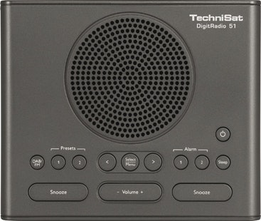 TechniSat DigitRadio 51. Tipo de radio: Reloj, Tipo de sintonizador: Digital, Bandas de radio soportadas: DAB,FM. Potencia estimada RMS: 1,5 W. Auriculares: 3,5 mm. Color del producto: Negro, Control de volumen: Digital. Alimentación: Corriente alterna, Frecuencia de entrada AC: 50 Hz, Voltaje de entrada DC: 230 V