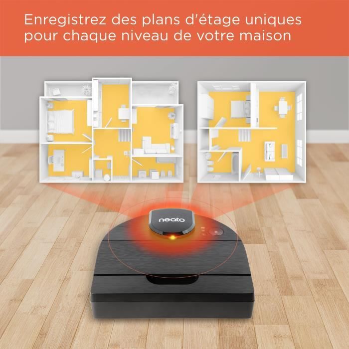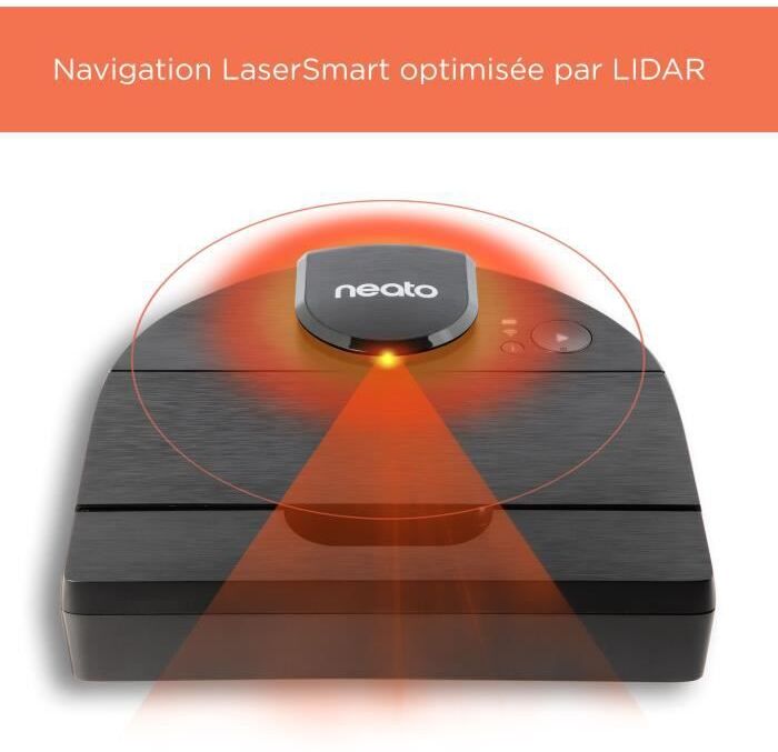 NEATO 945-0358 - Robot aspirador D9 - Cepillo espiral combinado 28cm - Estación de carga Slimline - Acabado en negro metalizado - Batería de iones de litio con autonomía de hasta 200min - Depósito de polvo de 0,7L - Cepillo lateral - Filtro de alto rendimiento E11 - Bluetooth- Turbo, Eco modo - Cable de alimentación de 2 m - Programa de limpieza