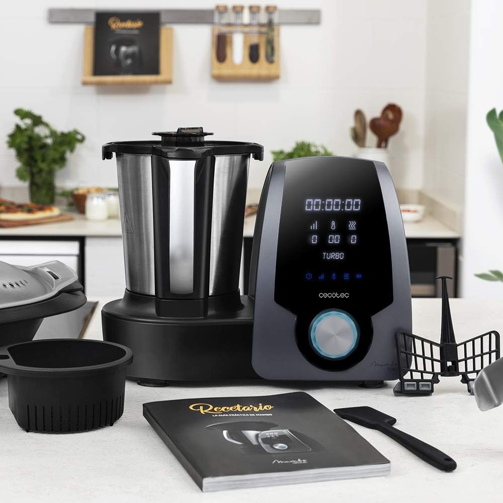 Robot de cocina multifunción Cecotec Mambo 7090 con 30 funciones: trocea, pica, licua, tritura, sofríe, muele, pulveriza, ralla, recalienta, bate, yogurtera, monta, emulsiona, mezcla, cocina, remueve, cocina al vapor, escalfa, confita, amasa, cocina a baja temperatura, hierve, mantiene caliente, fermenta, SlowMambo, cocina con precisión grado a grado, cocina al baño maría, cocción lenta, velocidad cero y dispone de función turbo.