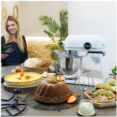 Cecotec Twist&Fusion 4500 Luxury. Capacidad del tazón: 5,2 L, Color del producto: Blanco, Funciones de mezcla: Batir, Amasar, Mezcla, Remover. Material del tazón: Acero inoxidable, Material de la carcasa: Aluminio. Tipo de visualizador: LED. Potencia: 800 W