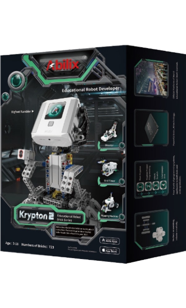 Características Robot educativo Abilix con 29 proyectos a realizarIncluye 723 elementosCombinación de elementos por 6 ladosTres lenguajes de programaciónSensores modernosAplicación móvilProcesador eficiente ARM Cortex 72 MHz Descripción General Los robots educativos Abilix de la serie Krypton apoyan el desarrollo de los niños y adolescentes en el aprendizaje de las ciencias y desarrollan competencias del futuro, como creatividad, razonamiento lógico, capacidad para resolver problemas o cooperación en grupo.Instrucciones claras e intuitivas de construcción y programación de robots incluidas en la aplicación hacen que el juguete sea idóneo hasta para los usuarios más jóvenes. Mientras que proyectos más complejos y lenguajes de programación más avanzados proporcionan una diversión y aprendizaje creativos para estudiantes de grado medio o hasta universitarios.Posibilidades infinitasUn sistema innovador que permite combinar elementos por hasta 6 lados ofreciendo posibilidades prácticamente ilimitadas de creación de proyectos.